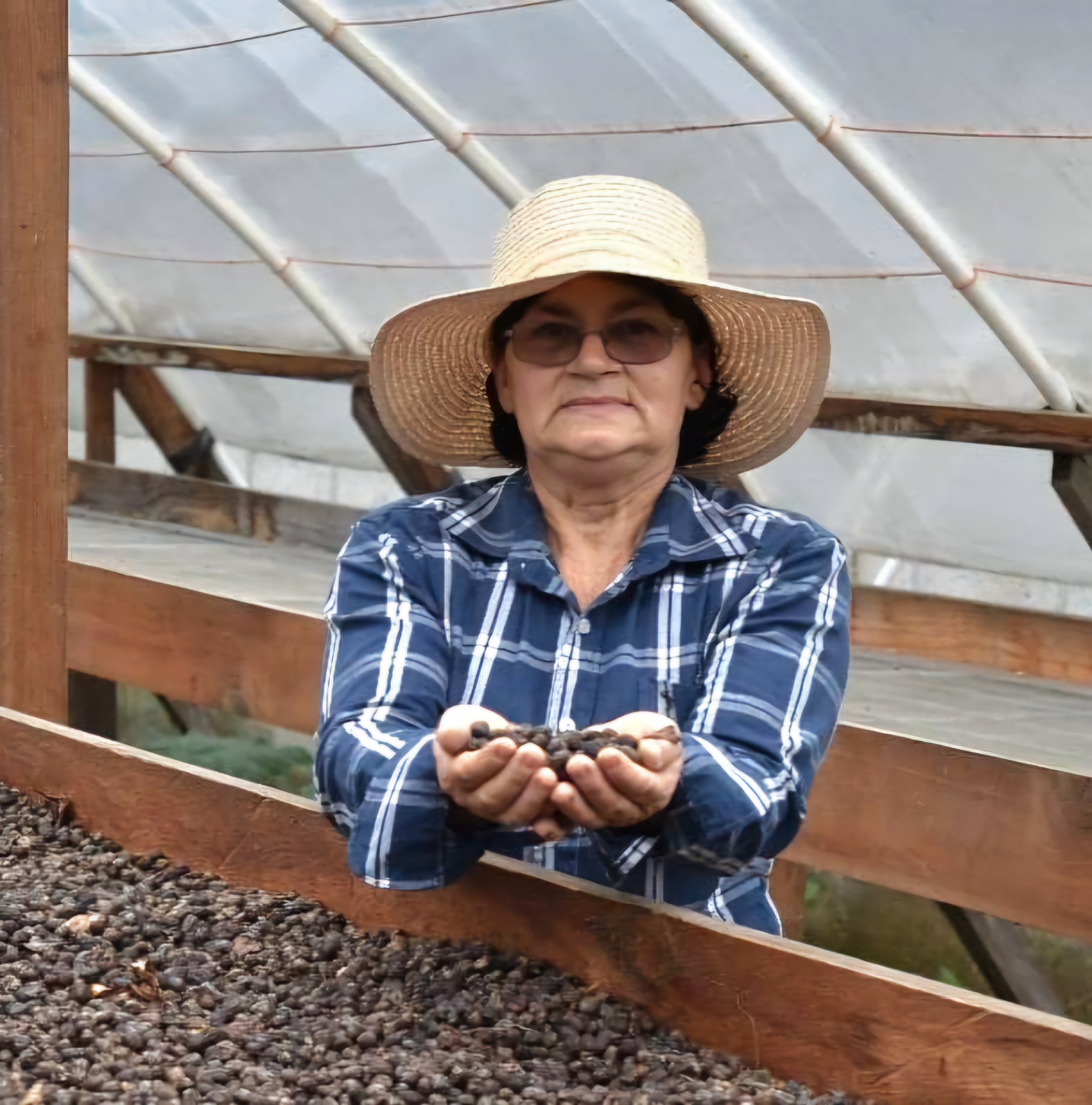 "Finca El Liquidámbar is gelegen in de gemeenschap Las Acacias in de gemeente Marcala, La Paz. Samen met mijn man hebben we in het jaar 1980 de eerste koffiebomen geplant op grond die we geërfd hebben. We zijn ouders van 8 kinderen. Na het overlijden van mijn man stonden mijn kinderen en ik voor de taak om de boerderij te onderhouden en de kwaliteit van de koffie te waarborgen. Er zijn enkele families die ons helpen bij het onderhoud van de boerderij, zoals snoeien, bemesten en oogsten. Deze families maken onze boerderij speciaal omdat ze dezelfde toewijding en passie voelen als wij. Dankzij deze passie en hard werken heb ik ervoor gezorgd dat mijn kinderen hun universitaire diploma's behalen. Via het Taza de Excelencia-programma heb ik prijzen gewonnen, waaronder een 6e plaats in 2015 en 2017, een 24e plaats in 2019 en een 21e plaats in 2021. Hierdoor heeft onze koffie internationale markten bereikt. Op Finca El Liquidámbar worden niet alleen koffiebonen verbouwd; hier groeit ook liefde, toewijding en hoop voor onze familie en alle mensen die betrokken zijn bij dit mooie avontuur genaamd koffieteelt.